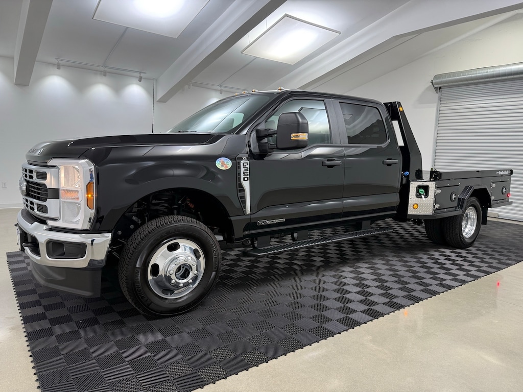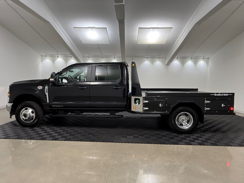 BRADFORD BUILT FLATBED, STEEL 4 BOX UTILITY BED w/ 30,000 LB GOOSENECK HITCH, RECIEVER HITCH RATED AT 24,000 LBS, EXTERNAL STAKE POCKETS, DROP DOWN RAILS, A PACKAGE TOTAL OF $12867 UPFIT, FordPass Connect 5G WI-FI Hotspot Telematics Modem, 4WD, 17" Forged Polished Aluminum Wheels, 4-Wheel Disc Brakes, ABS brakes, Amber-Wht 360-Deg Dual Beacon LED Warning Strobes, Center High-Mounted Stop Lamp (CHMSL), Cruise Control, Dual Battery, Dual Diesel Fuel Tanks, Dual Front Impact Airbags, Dual Front Side Impact Airbags, Dual Rear Wheels, Emergency communication system: SYNC 4 911 Assist, Fog Lamps, Front Wheel Well Liners, Fully Automatic Headlights, GVWR: 14,000 lb Payload Package, Heated Power Door Mirrors, Interior Work Surface, Limited Slip w/4.10 Axle Ratio, Order Code 640A, Platform Running Boards, Privacy Glass w/Power Sliding Rear Glass, Pro Power Onboard - 2kW, Rear View Camera & Prep Kit, Rear Window Defroster, Remote Keyless Entry, Remote Start System, SiriusXM w/360L, SYNC 4 Communication & Entertainment System, SYNC 4 w/Enhanced Voice Recognition, Tilt / Telescoping Steering Wheel, Traction Control, Trailer Brake Controller, XL Chrome Package. 4D Crew Cab/Chassis DRW