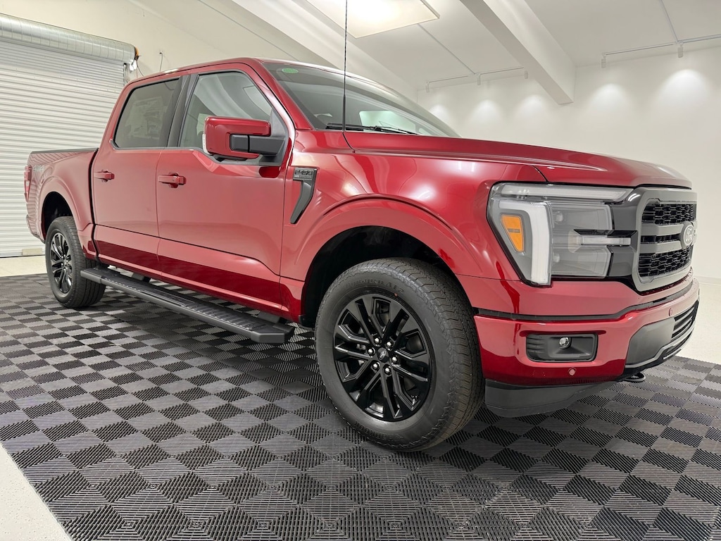 Pre-Collision Assist with Automatic Emergency Braking, Blind Spot with Cross Traffic Alert, Rear View Camera, 360-Degree Camera, Post Collision Braking, Lane Keep Assist, Intelligent Access with Push Button Start, 4WD, 4 Pickup Box Tie-Down Plates, 4-Wheel Disc Brakes, 6" Angular Bright Anodized Step Bar, ABS brakes, ActiveX Trimmed Bucket Seats, Air Conditioning, Auto High-Beam Headlights, Automatic temperature control, Bed Storage Boxes, Bed Utility Package, Black Exterior Badging, Black Grille, Black Taillamp Bezels, BlueCruise (equipment + 1 Year + 90-Day Plan), Body-Color Front and Rear Bumpers, Brake assist, Console Worksurface, Cruise Control, Dark Interior Appliques, Delay-off headlights, Dual Front Impact Airbags, Dual Front Side Impact Airbags, Electronic Locking with 3.31 Axle Ratio, Electronic Stability Control, Emergency communication system: SYNC 4 911 Assist, Equipment Group 501A Mid, Ford Connectivity Package (1-Year Included), Front anti-roll bar, Front Dual Zone A/C, Front Fog Lights, Front wheel independent suspension, Fully Automatic Headlights, Gray Box Side Decal, GVWR: 7,100 lbs Payload Package, Illuminated Driver and Passenger Visors, Lariat Black Appearance Package, LED Box Lighting, Low tire pressure warning, Matte Black Tailgate F-150 Decal, Mobile Office Package, Occupant sensing airbag, Overhead airbag, Panic alarm, Partitioned Lockable Rear Storage, Power Driver Memory Seat, Power Driver Seat, Power Steering, Power Windows, Power-Adjustable Pedals with Memory, Power-Sliding Rear Window, Radio: B&O Sound System by Bang and Olufsen, Rear Window Defroster, Seats: 1st Row Front Bucket Seats, Seats: Heated & Ventilated Front Seats, Seats: Power Front Bucket Seats, Security system, SYNC 4 with Enhanced Voice Recognition, Tailgate Step with Work Surface, Variable Interval Wipers, Wheels: 20" Gloss Black Painted Aluminum, Wireless Charging Pad. 4D SuperCrew