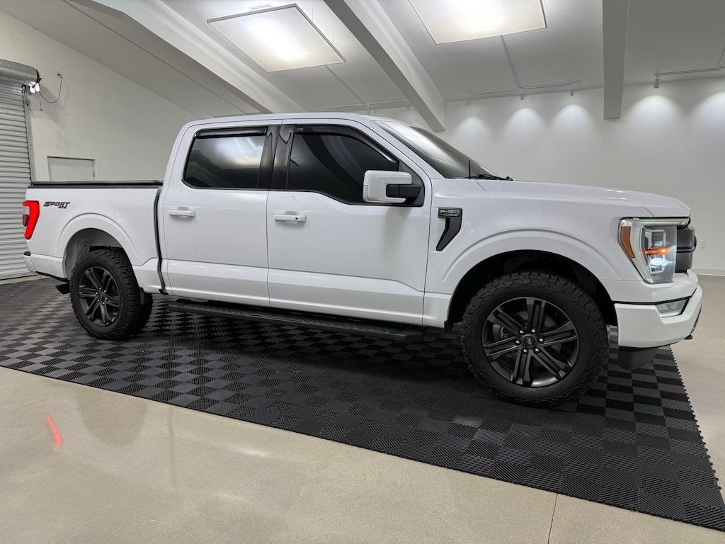 Lane Keep Assist, Rear Cross Traffic Alert, Blind Spot Information System, FordPass Connect 4G WI-FI Hotspot Telematics Modem, 4WD, 2nd Row Heated Seats, 6" Chrome Running Board, ABS brakes, Accent-Color Angular Step Bars, Adjustable Pedals, Body-Color Front & Rear Bumpers, Box Side Decals, Chrome 2-Bar Grille w/4 Minor Bars, Chrome Door & Tailgate Handles w/Body-Color Bezel, Chrome Single-Tip Exhaust, Chrome Skull Caps on Exterior Mirrors, Connected Built-In Navigation System, Dark 2-Bar & 1 Minor Bar Style Grille, Dual Front Impact Airbags, Dual Front Side Impact Airbags, Electronic Locking w/3.55 Axle Ratio, Electronic Stability Control, Equipment Group 502A High, Evasive Steering Assist, Extended Range 36 Gallon Fuel Tank, Exterior Parking Camera Rear, Ford Co-Pilot360 Assist 2.0, Front Dual Zone A/C, Fully Automatic Headlights, GVWR: 6,600 lbs Payload Package, Heated Power Door Mirrors, Heated Steering Wheel, Intelligent Adaptive Cruise Control w/Stop & Go, Intersection Assist, Lariat Chrome Appearance Package, Lariat Sport Appearance Package, Leather-Trimmed Bucket Seats, LED Projector w/Dynamic Bending Headlamps, Memory Settings for Driver Seat/Mirrors/Pedals/etc, Onboard 400W Outlet, Panic alarm, Power Tilt/Telescoping Steering Column w/Memory, Power Windows, Radio: B&O Sound System by Bang & Olufsen, Rain-Sensing Wipers, Rear Window Defroster, Remote Keyless Entry, Seats: Heated & Ventilated Front Seats, Speed Sign Recognition, SYNC 4 w/Enhanced Voice Recognition, Tough Bed Spray-In Bedliner, Traction Control, Twin Panel Moonroof, Universal Garage Door Opener, Wheels: 20" 6-Spoke Dark Alloy Painted Aluminum. 4D SuperCrew